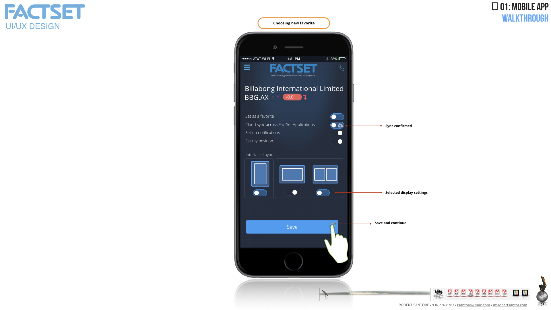 I developed a new mobile design framework and visual signature which enhanced and simplified Factset users in navigating a complex system to find the data and information pertinent to them.